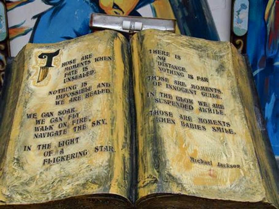 ResponderExcluirNeverland é um espaço magico, encantado, ela vivera para sempre nos corações e nas memórias de quem realmente consegue sentir e entender esses sentimentos, pois Neverland é uma parte da alma de Michael, foi um lugar sagrado, um espaço imaculado, mas para Michael, Neverland deixou de ser assim em partes após a invasão, deixou de ser pura, pois ficaram marcas, lembranças tristes, mancharam, contaminaram Neverland, deixou de ser casto, ficou uma mácula, fizeram à Neverland o mesmo que fizeram à Michael, desmerecidamente, pois Neverland continua pura e inocente, assim como o seu criador